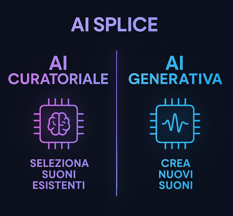 Questo grafico aiuta a distinguere in modo immediato la natura dell’AI di Splice — curatoriale, non generativa — chiarendo un punto fondamentale spesso frainteso dai lettori.