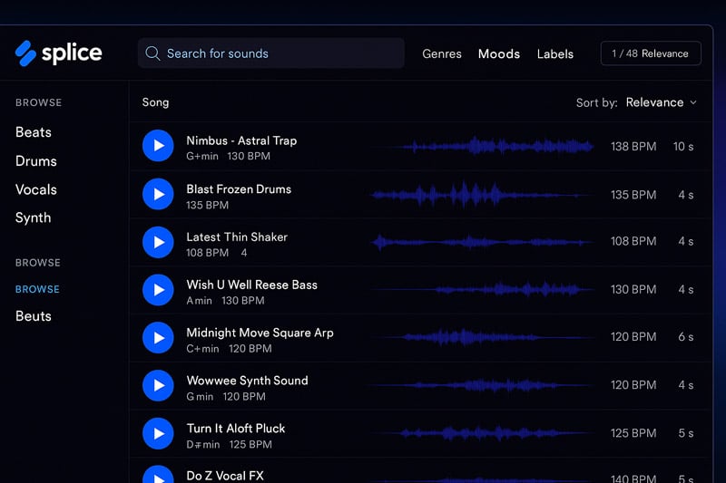 La libreria di Splice non è solo vasta: è profondamente usabile, progettata come un’estensione del tuo processo creativo.