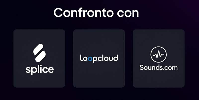 Questa immagine offre un confronto visivo immediato tra Splice, Loopcloud e Sounds.com, migliorando la chiarezza della sezione comparativa.