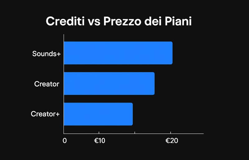 piani principali partono da $12.99/mese (Sounds+), $19.99/mese (Creator) e $39.99/mese (Creator+). Ogni piano offre un numero diverso di crediti mensili, accumulabili nel tempo.