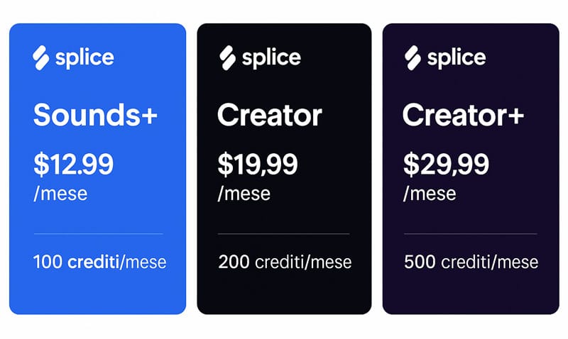 | Creator | 200 | $19.99 / mese | Tutte le funzioni di Sounds+ + Splice Bridge + Splice Create | Producer che vogliono anteprime sincronizzate e workflow più veloce |